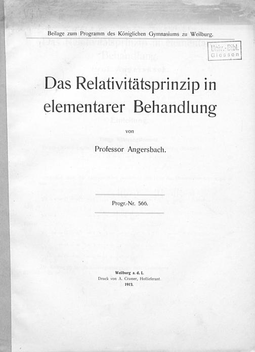 Das Relativitätsprinzip in elementarer Behandlung