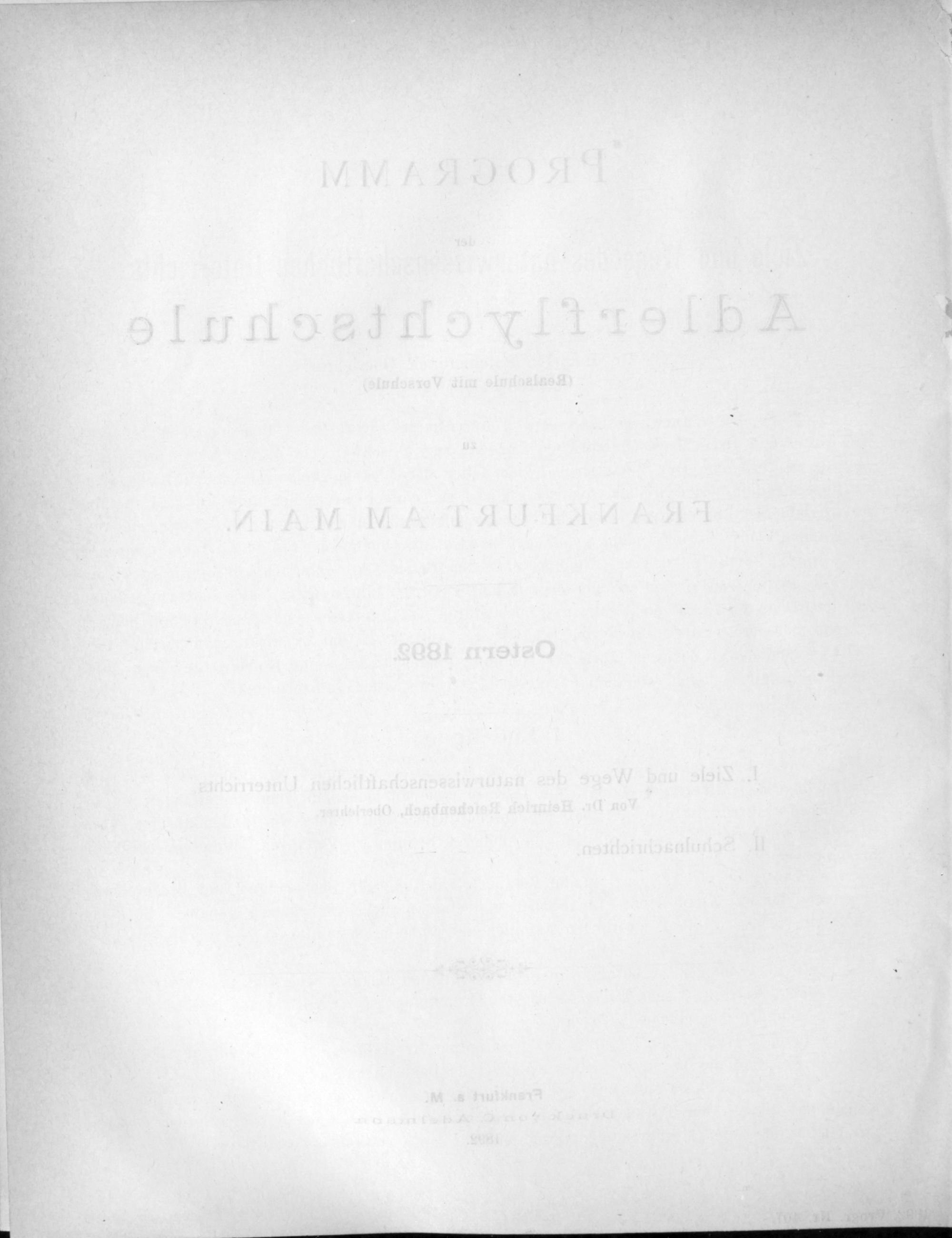 Programm der Adlerflychtschule (Realschule mit Vorschule, gegründet Ostern 1876) zu Frankfurt am Main