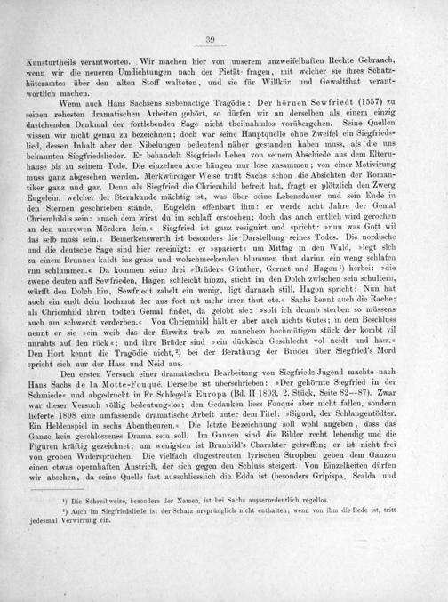 ¹) Die Schreibweise, besonders der Namen, ist bei Sachs ausserordentlich regellos. ²) Auch im Siegfriedsliede ist der Schatz ursprünglich nicht enthalten; wenn von ihm die Rede ist, tritt jedesmal Verwirrung ein.
