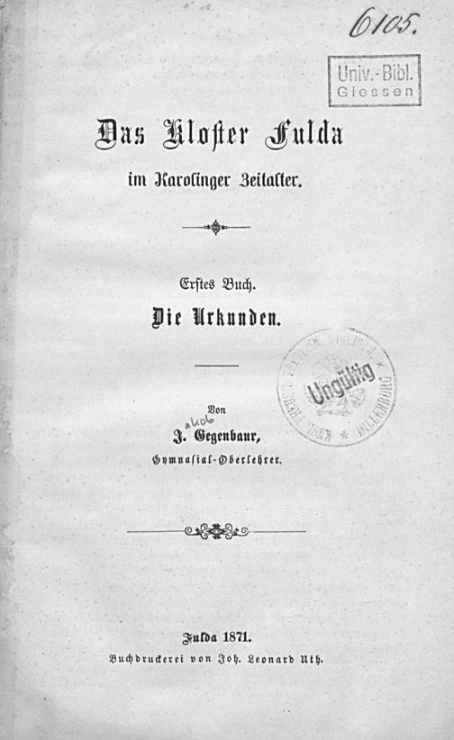 Fulda 1871. Buchdruckerei von Joh. Leonard uth.