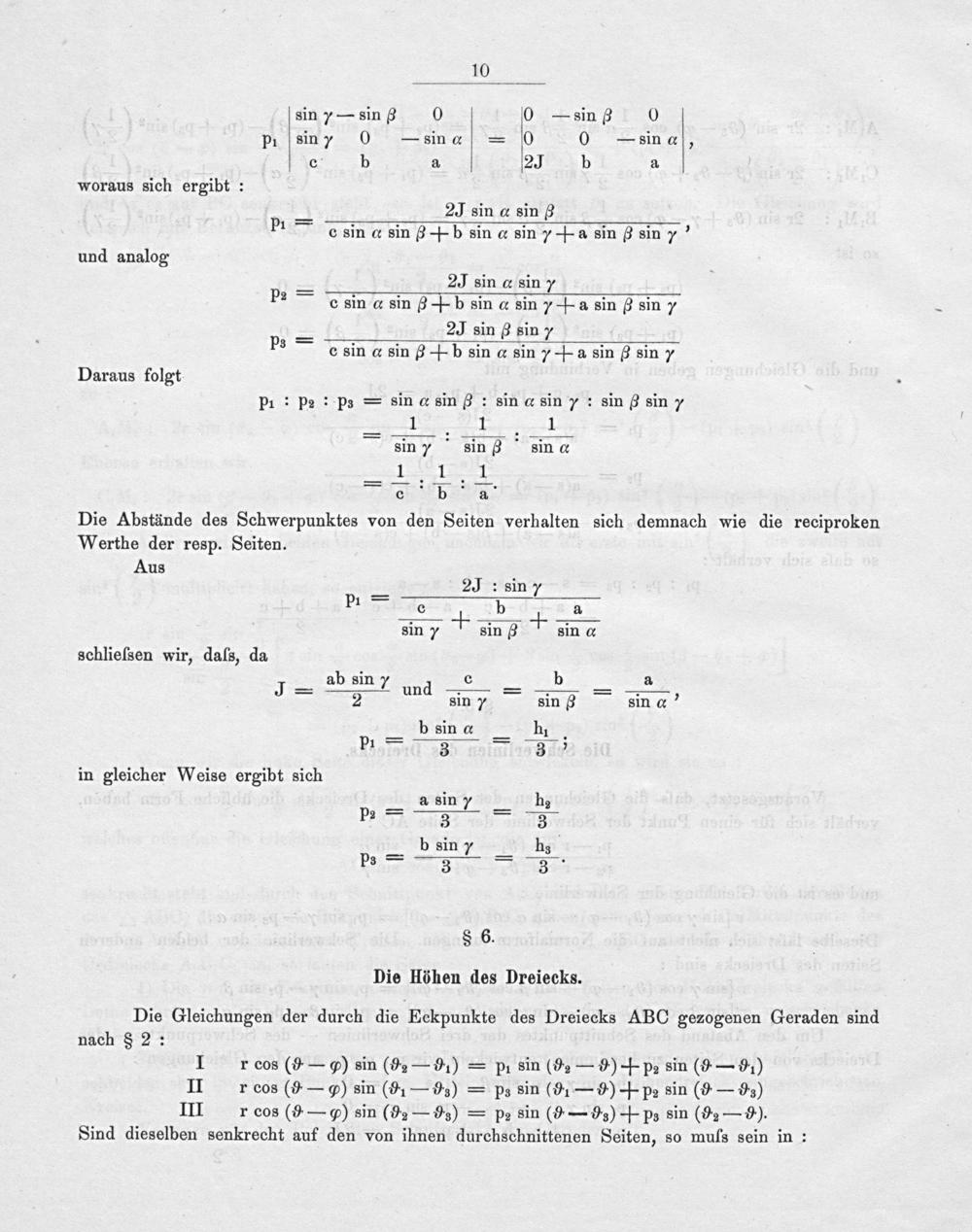 sin— sin 8 0 0— sin 9 0 pi sin„y 0O— sina= 0 0)— sin a, c. b a 2J b a woraus sich ergibt: — 2] sin a sin 9 P1 c sin sin G+ b sin a sin Pa sin S sin* und analog — 2.] sin a sin„ P= c sin a sin+ b sin a sin a sin d sin„ — 2. sin g sin„ P= c sin a sin+ b sin a sin Pa sin sin Daraus folgt pi: pza: ps= sin a sin 8: sin a sin: sin g sin„
