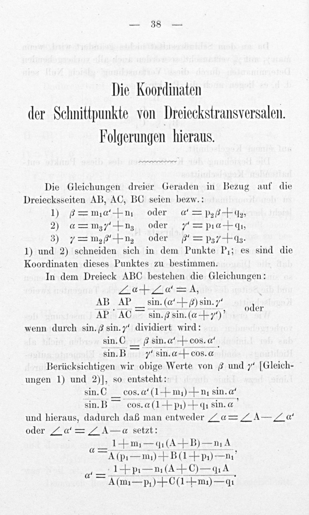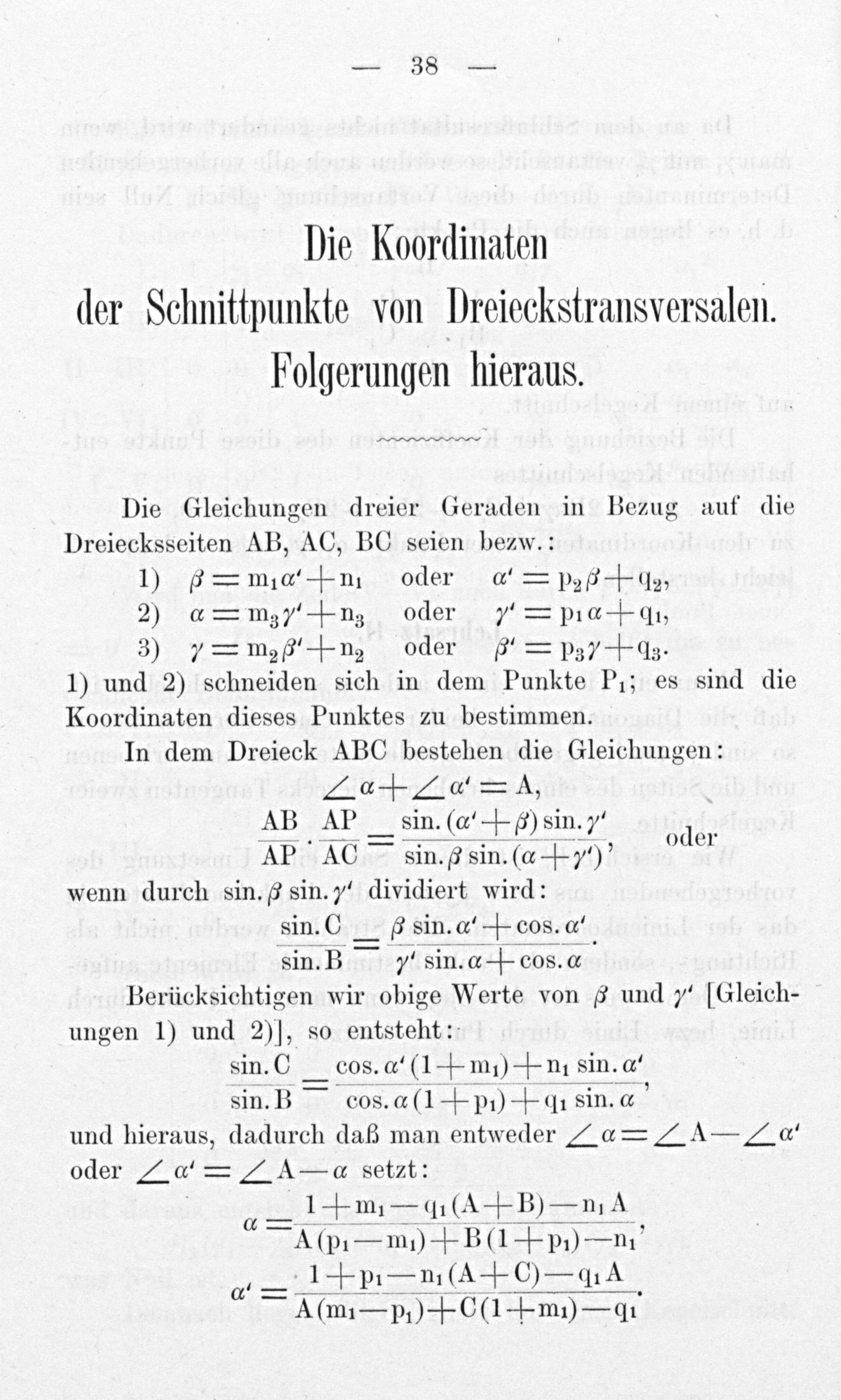 Die Koordinaten der Schnittpunkte von Dreieckstransversalen. Folgerungen hieraus.