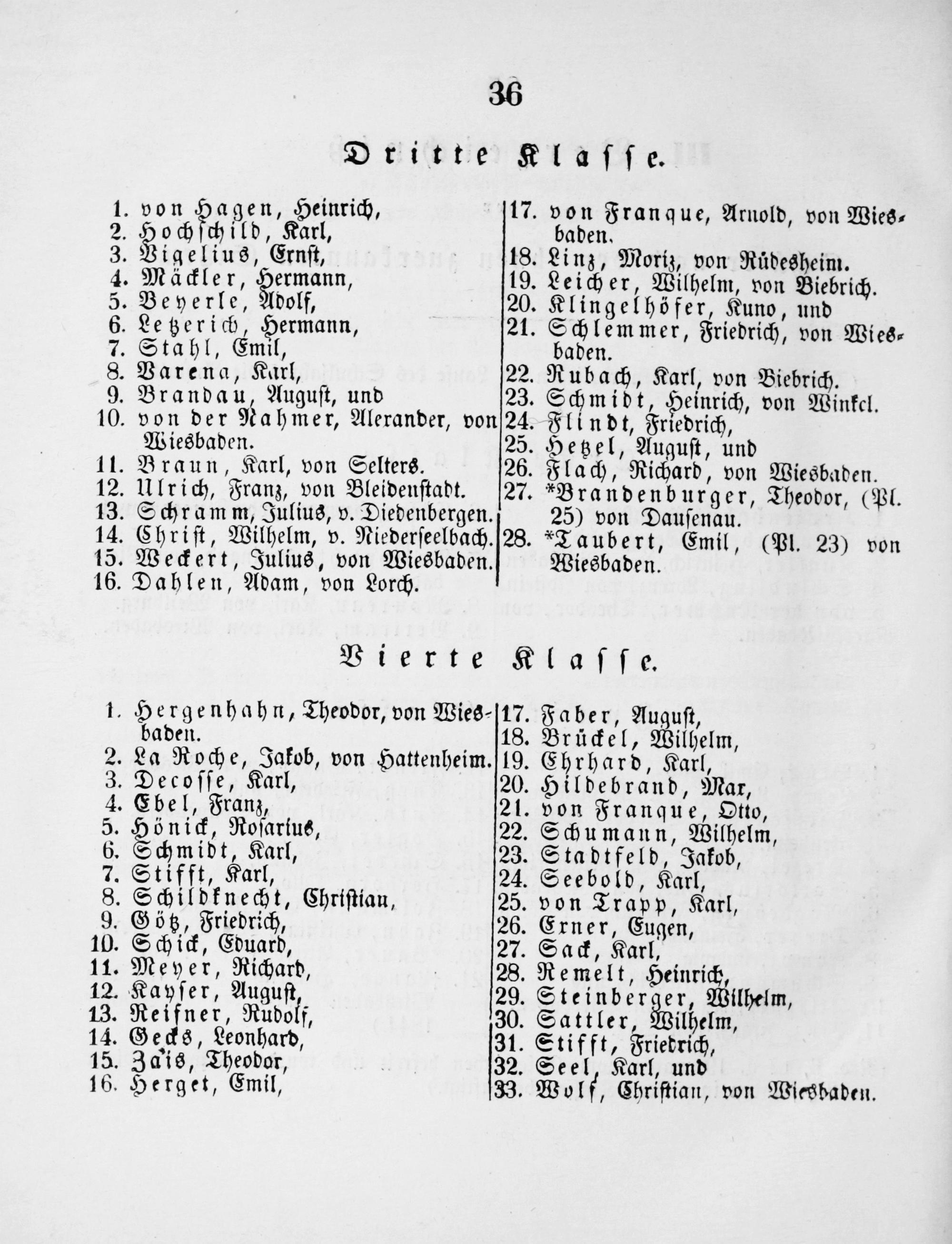 .Linz, Moriz, von Rüdesheim. .Leicher, Wilhelm, von Biebrich. Klingelhöfer, Kuno, und .Schlemmer, Friedrich, von Wies⸗