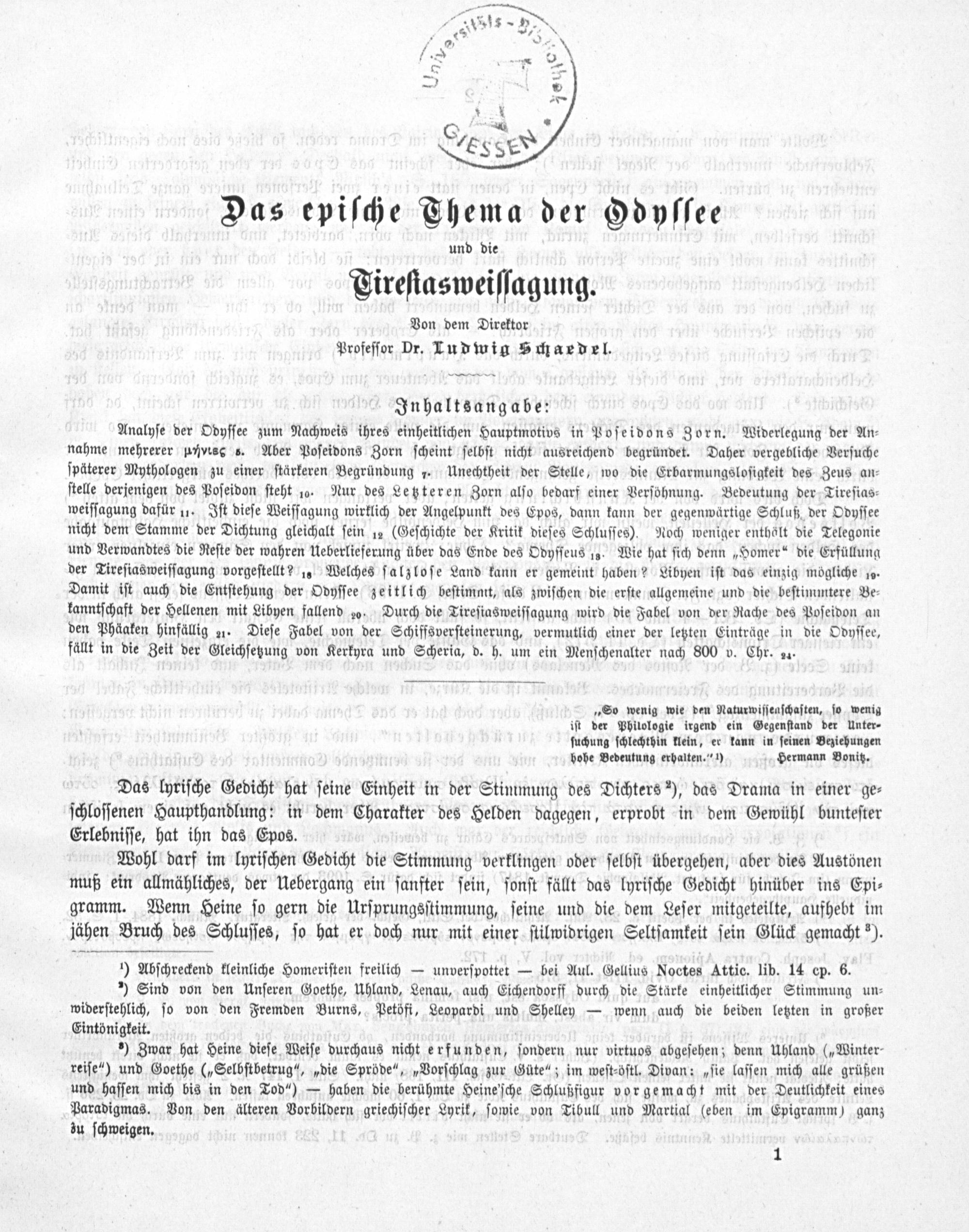 „So wenig wie den Naturwiſſenſchaſten, ſo wenig iſt der Philologie irgend ein Gegenſtand der Unter⸗ ſuchung ſchlechthin klein, er kann in ſeinen Beziehungen hohe Bedeutung erhalten.“¹) Hermann Bonitz.