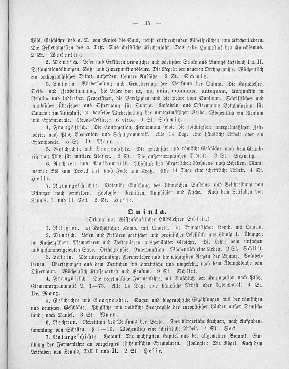 OQuinta. (Ordinarius: Wiſſenſchaftlicher Hülfslehrer Schlitt.)