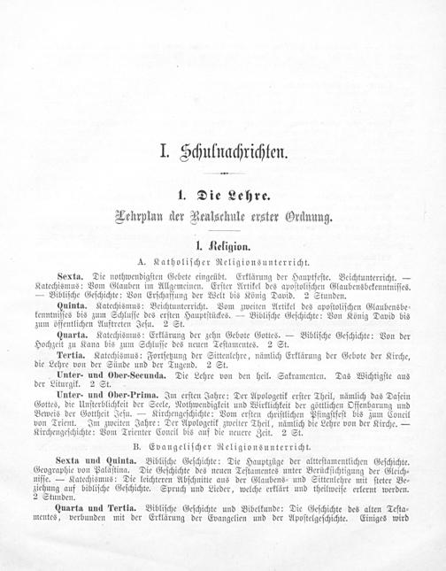 1. Die Lehre. Vehrplan der Realschule erster Gränung.