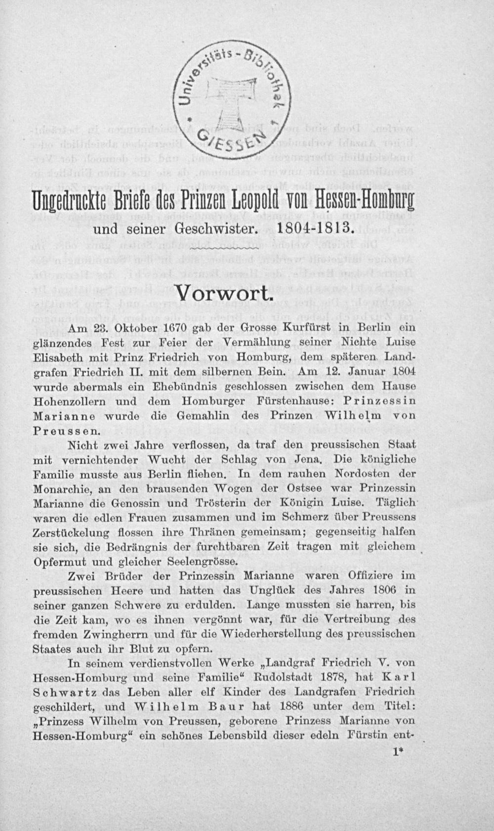 Ungedruckte Briefe des Prinzen Leopold von Hessen-Homburg und seiner Geschwister. 1804-1813.