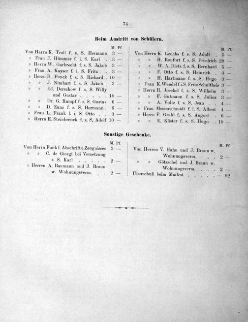 » Dr. G. Rumpf f. s. S. Guxtar 6 »» D. Zunz f. s. S. Hermann. 6 » Frau L. Frank f. i. S. Otto 3