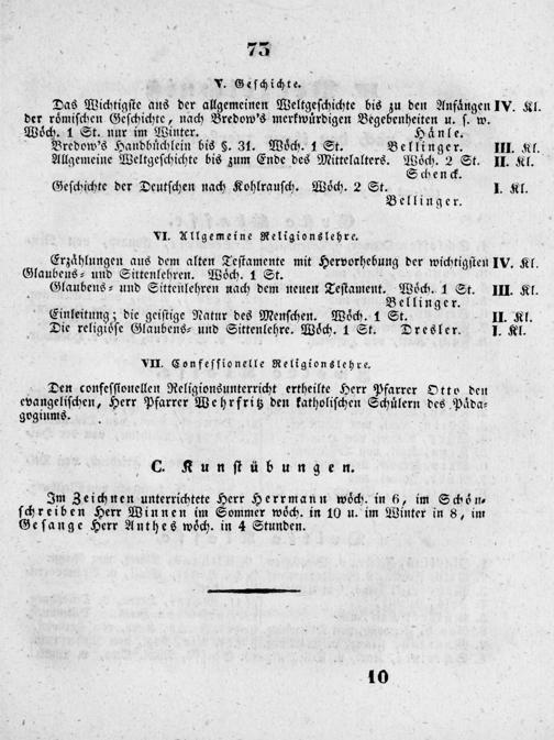 Woͤch. 1 St. nur im Winter. Haͤnle. Bredow's Handbuͤchlein bis§. 31. Woͤch. 1 St. Bellinger. III. Kl. Allgemeine Weltgeſchichte bis zum Ende des Mittelalters. Wuih 7, St. II. Kl. chenck. Geſchichte der Deutſchen nach Kohlrauſch. Woͤch. 2 St.— I. Kl. Bellinger.