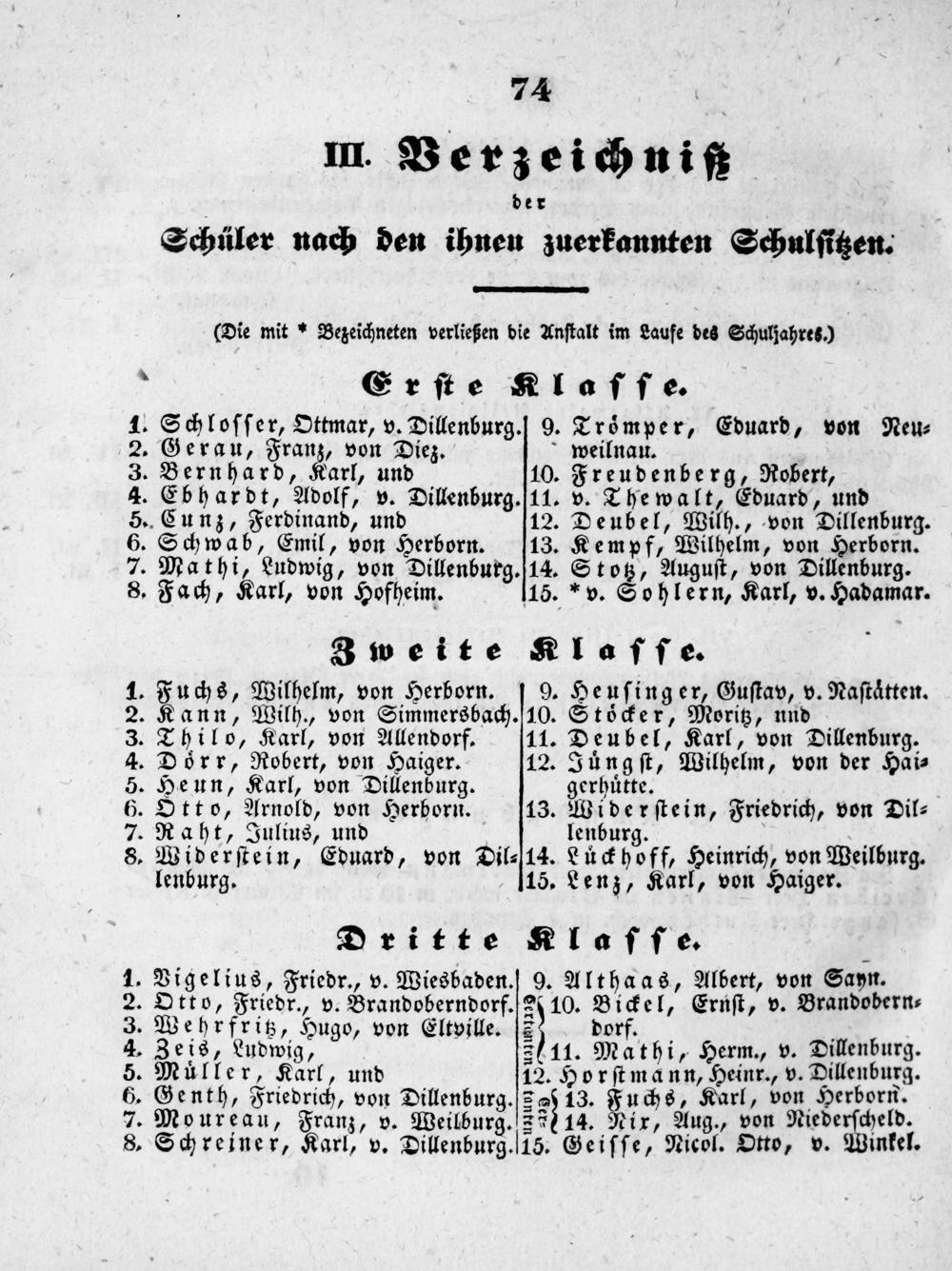 Stotz, Auguſt, von Dillenburg. 115.* v. Sohlern, Karl, v. Hadamar. Klaſſe.