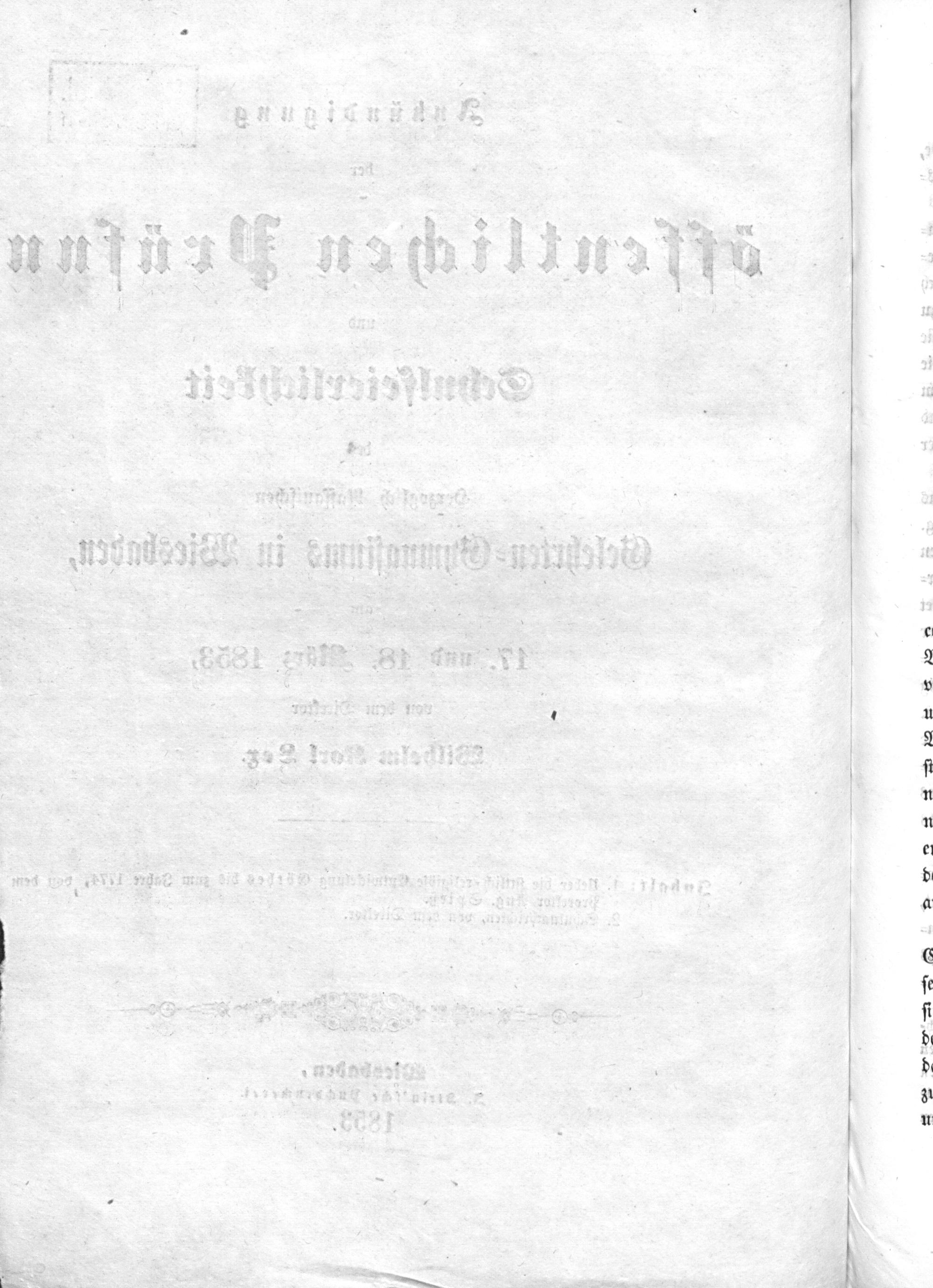 Ankündigung der öffentlichen Prüfung des Herzoglich-Nassauischen Gelehrten-Gymnasiums zu Wiesbaden