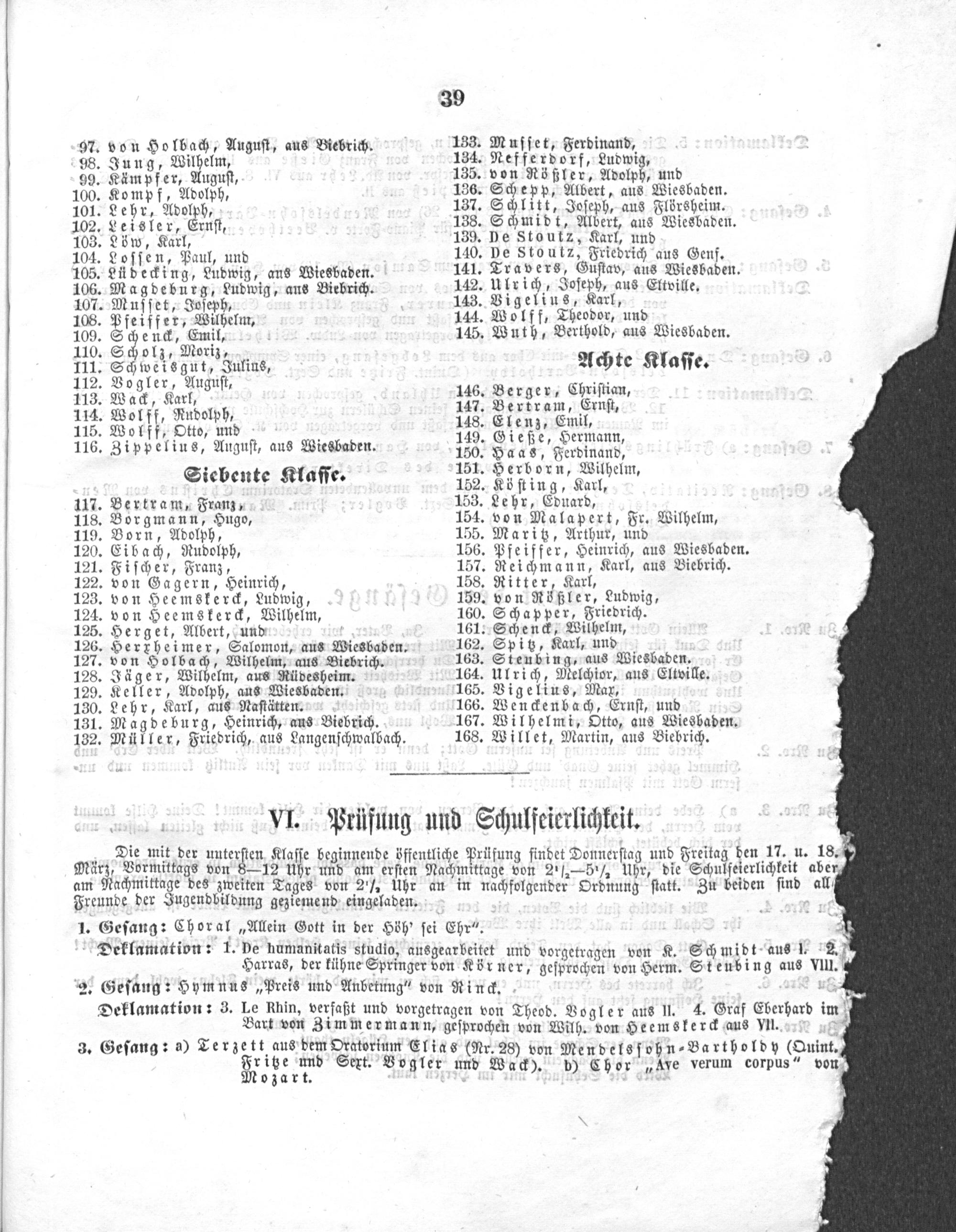 Zippelius, Auguſt, aus Wiesbaden. Siebente Klaſſe.