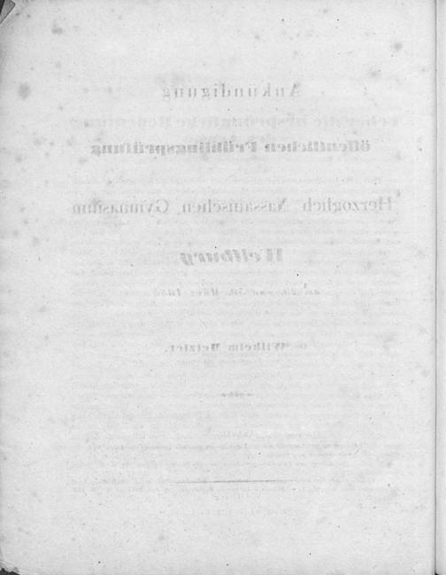 Ankündigung der öffentlichen Frühlingsprüfung im Herzoglich-Nassauischen Gymnasium zu Weilburg