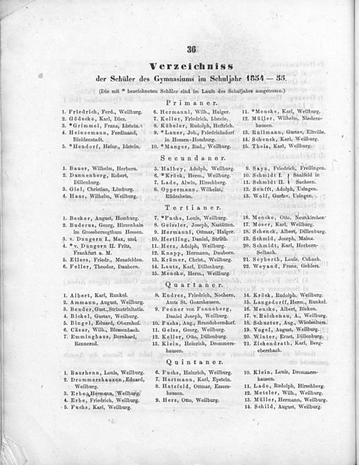 . Halbey, Adolph, Weilburg. .* Kröck, Herm., Weilburg. .Lade, Alwin, Hirschberg. Oppermann, Wilhelm,