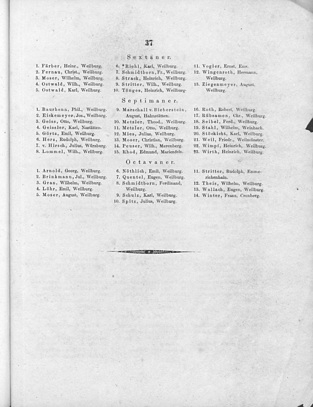 .Baurhenn, Phil., Weilburg. .Eickemeyer, Jos., Weilburg. . Geiss, Otto, Weilburg.