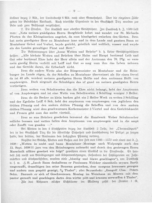 Item die andere Wette also der Bürgermeister zu Montabaur und die Heim- burger im Lande rügen, da der Scheffen zu Montabaur überweisset als für einen frevel da ist 40 alb. werdent meinem gnedigsten Herrn Helfte und dem amtmann Helft von amptswegen. Doch nirgendt die Schuldigen das uf gnad an meinen gnedigsten Herrn verthetigen.
