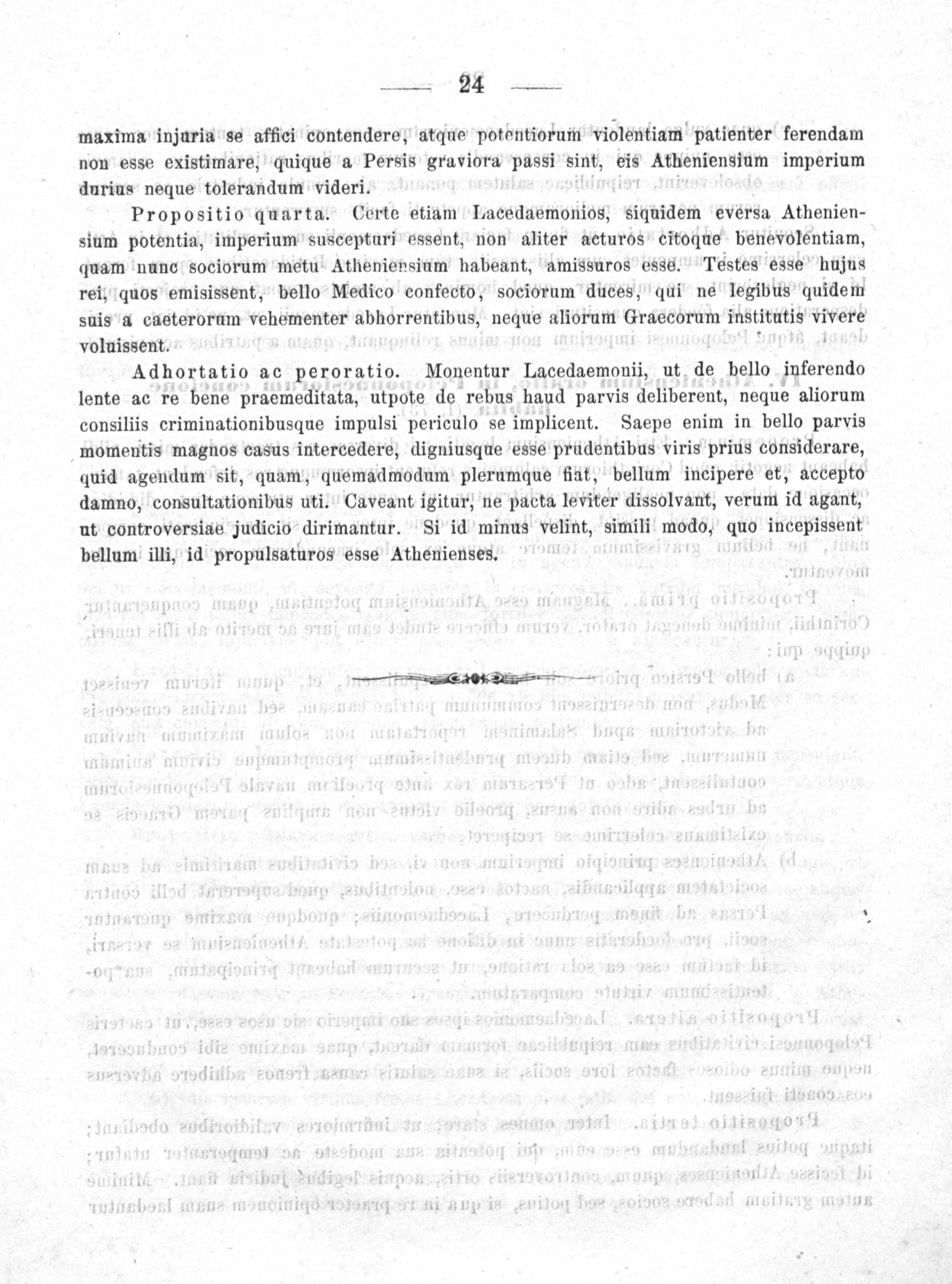Propositio quarta. Certe etiam Lacedaemonios, siquidem eversa Athenien- sium potentia, imperium suscepturi essent, non aliter acturos citoque benevolentiam, quam nunc sociorum metu Atheniensium habeant, amissuros esse. Testes esse hujus rei, quos emisissent, bello Medico confecto, sociorum duces, qui ne legibus quidem suis a caeterorum vehementer abhorrentibus, neque aliorum Graecorum institutis vivere voluissent. 1