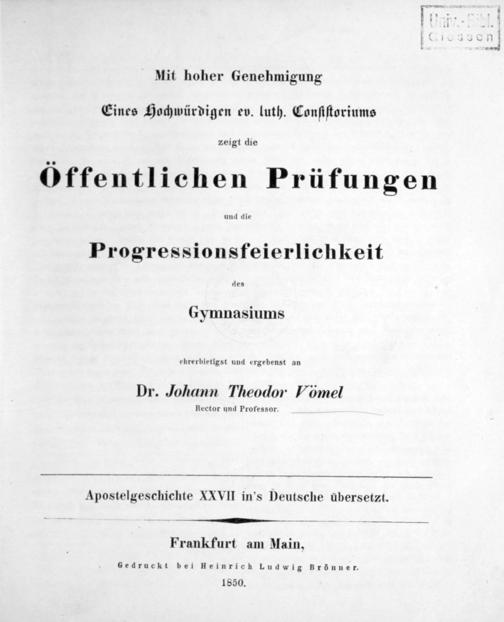 Gedruckt bei Heinrich Ludwig Brönner. 1850.
