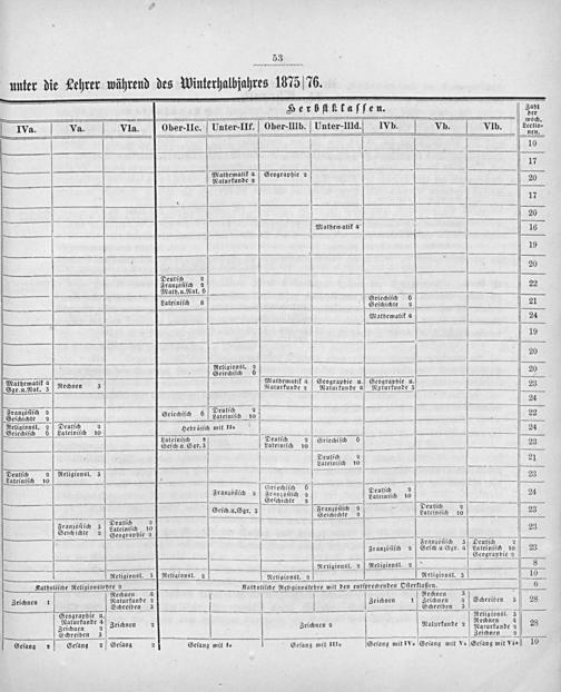 unter die Lehrer während des Winterhalbjahres 1875 76.