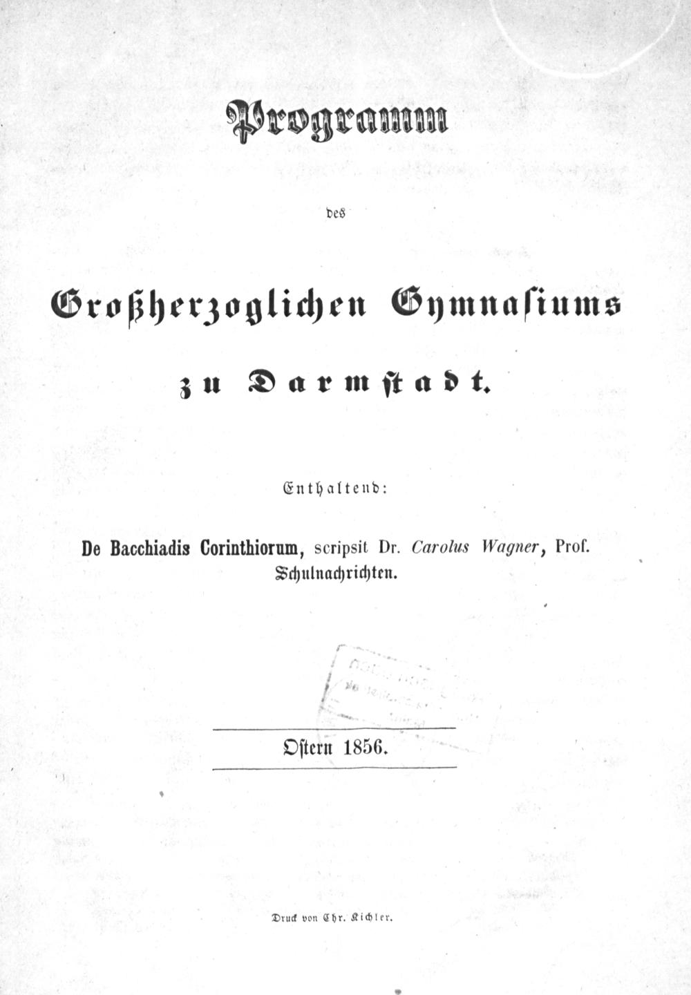 De Bacchiadis Corinthiorum, scripsit Dr. Carolus Wagner, Prof. Schulnachrichten.