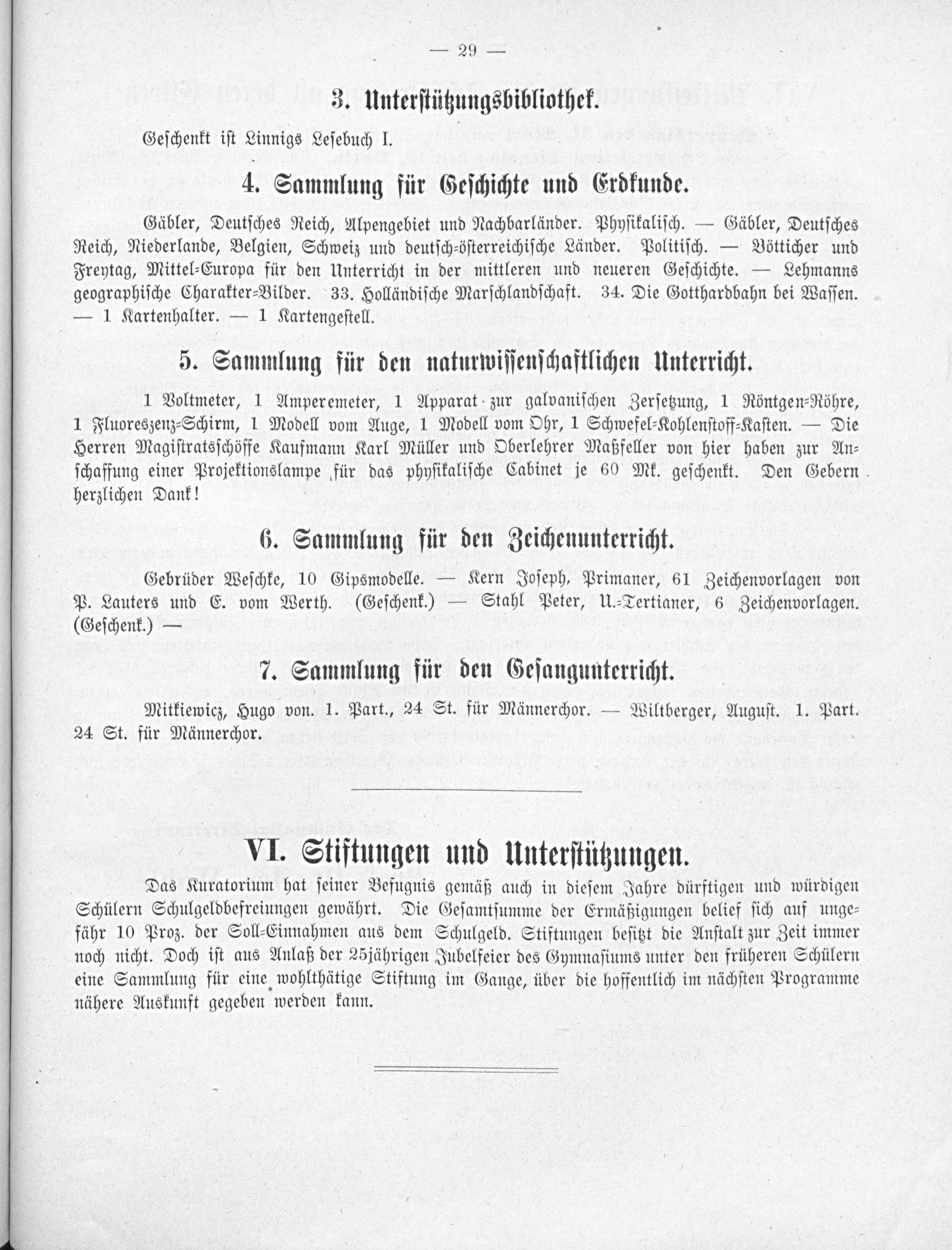 VI. Stiftungen und Unterſtützungen.