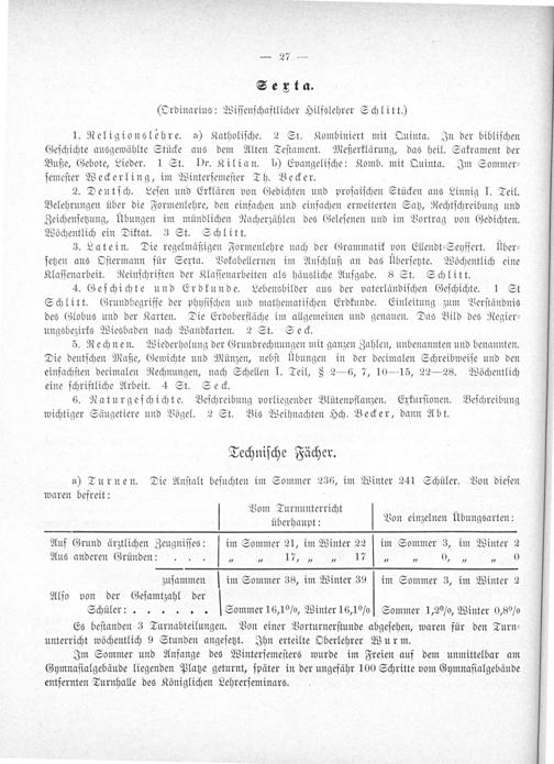 Serta. (Ordinarius: Viſſeenſchaftlicher Hilfslehrer Schlitt.)
