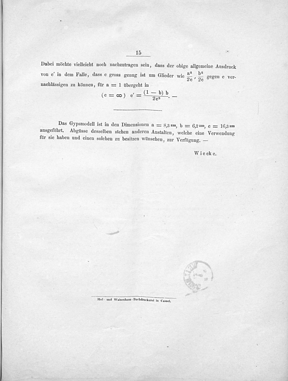 Das Gypsmodell ist in den Dimensionen a= 8„3 2m, b= 6,2 2m, c= 16,3 2m ausgeführt. Abgüsse desselben stehen anderen Anstalten, welche eine Verwendung für sie haben und einen solchen zu besitzen wünschen, zur Verfügung.—