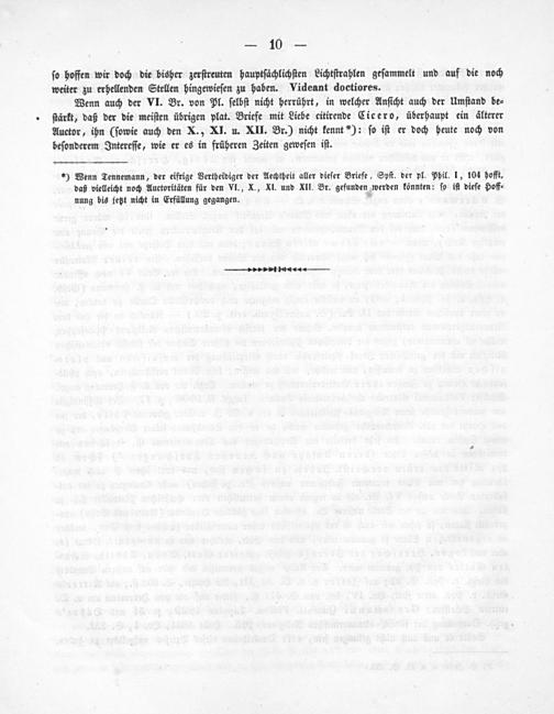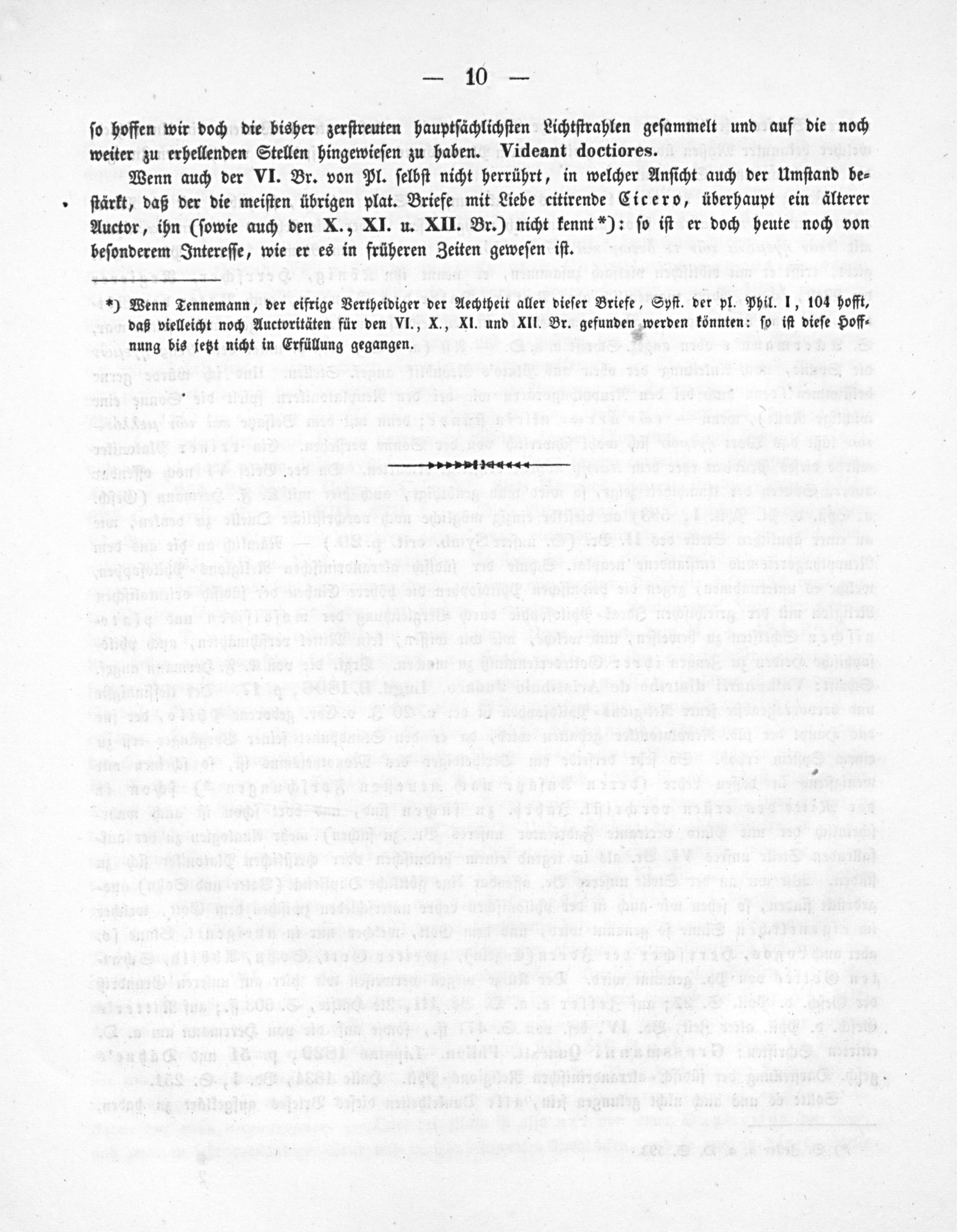 Wenn auch der VI. Br. von Pl. ſelbſt nicht herrührt, in welcher Anſicht auch der Umſtand be⸗ ſtärkt, daß der die meiſten übrigen plat. Briefe mit Liebe citirende Cicero, überhaupt ein älterer Auctor, ihn(ſowie auch den X., XI. u. XII. Br.) nicht kennt*): ſo iſt er doch heute noch von beſonderem Intereſſe, wie er es in früheren Zeiten geweſen iſt.