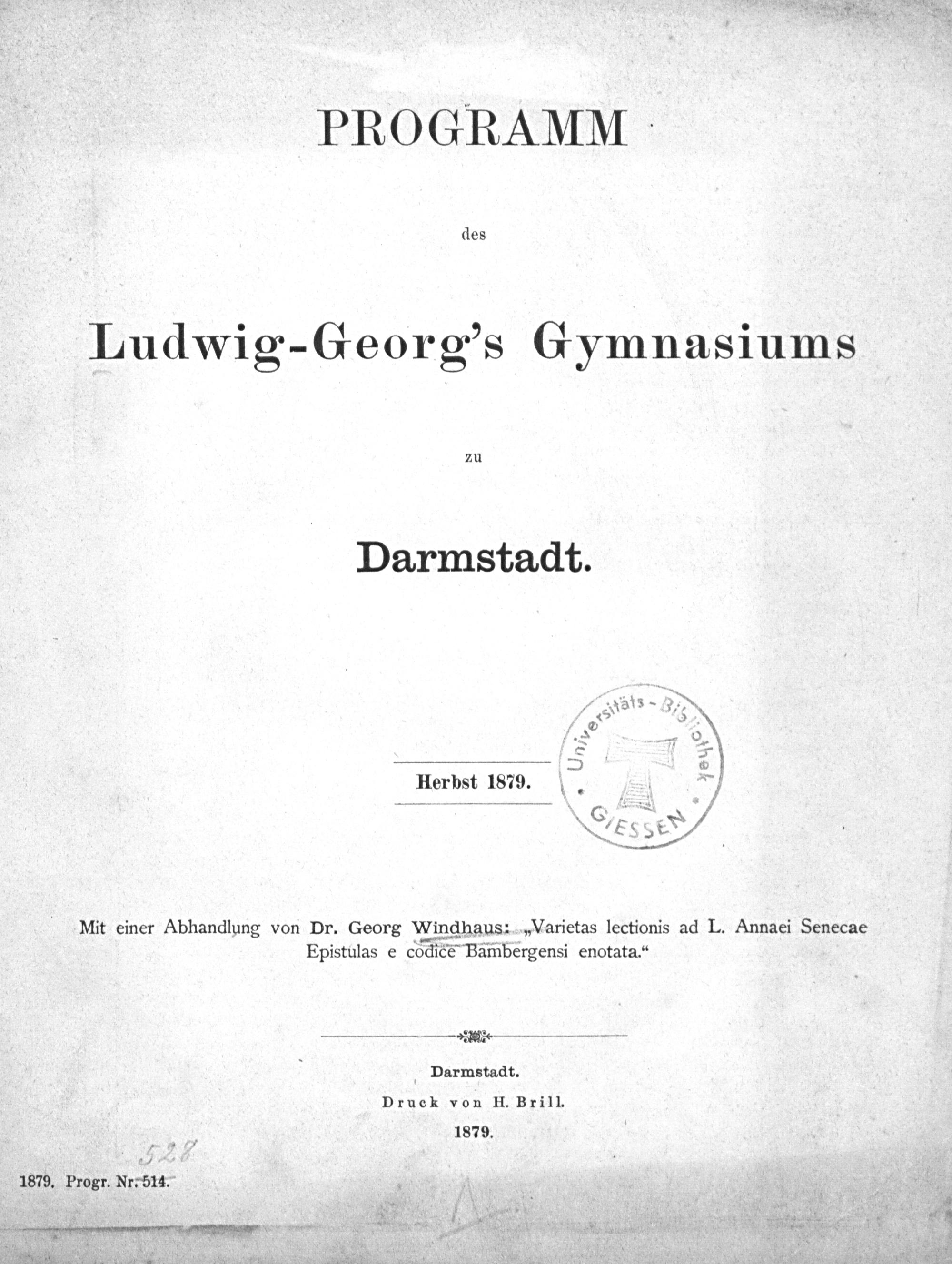 Darmstadt. Druck von H. Brill. 1879.