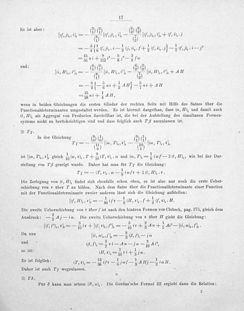 3) 79. 4 3 Für d kann man setzen(⁹,«*),. Die Gordan'sche Formel III ergiebt dann die Relation: