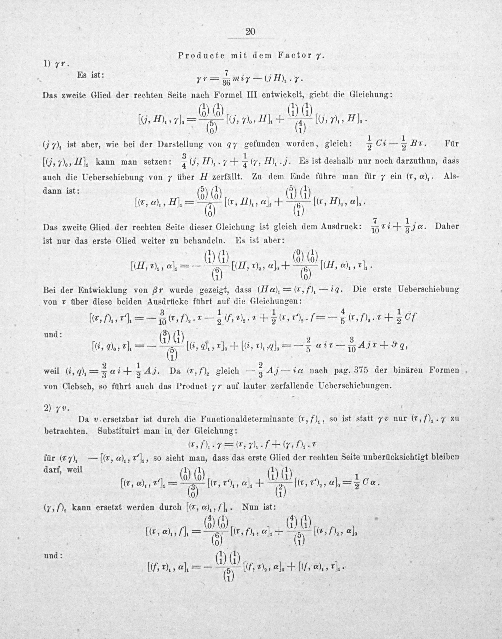 Bei der Entwicklung von r wurde gezeigt, dass(H)=(1, †)— 19. Die erste Ueberschiebung von ⁊ über diese beiden Ausdrücke führt auf die Gleichungen: