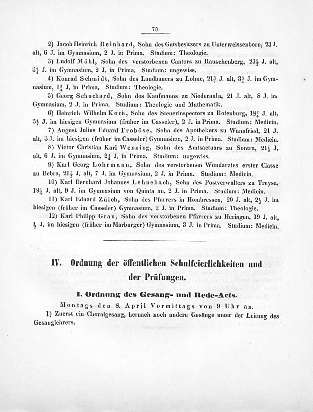 10) Karl Bernhard Johannes Lehnebach, Sohn des Postverwalters zu Treysa. 194 J. alt, 9 J. im Gymnasium von Quinta an, 2 J. in Prima. Studium: Medicin.