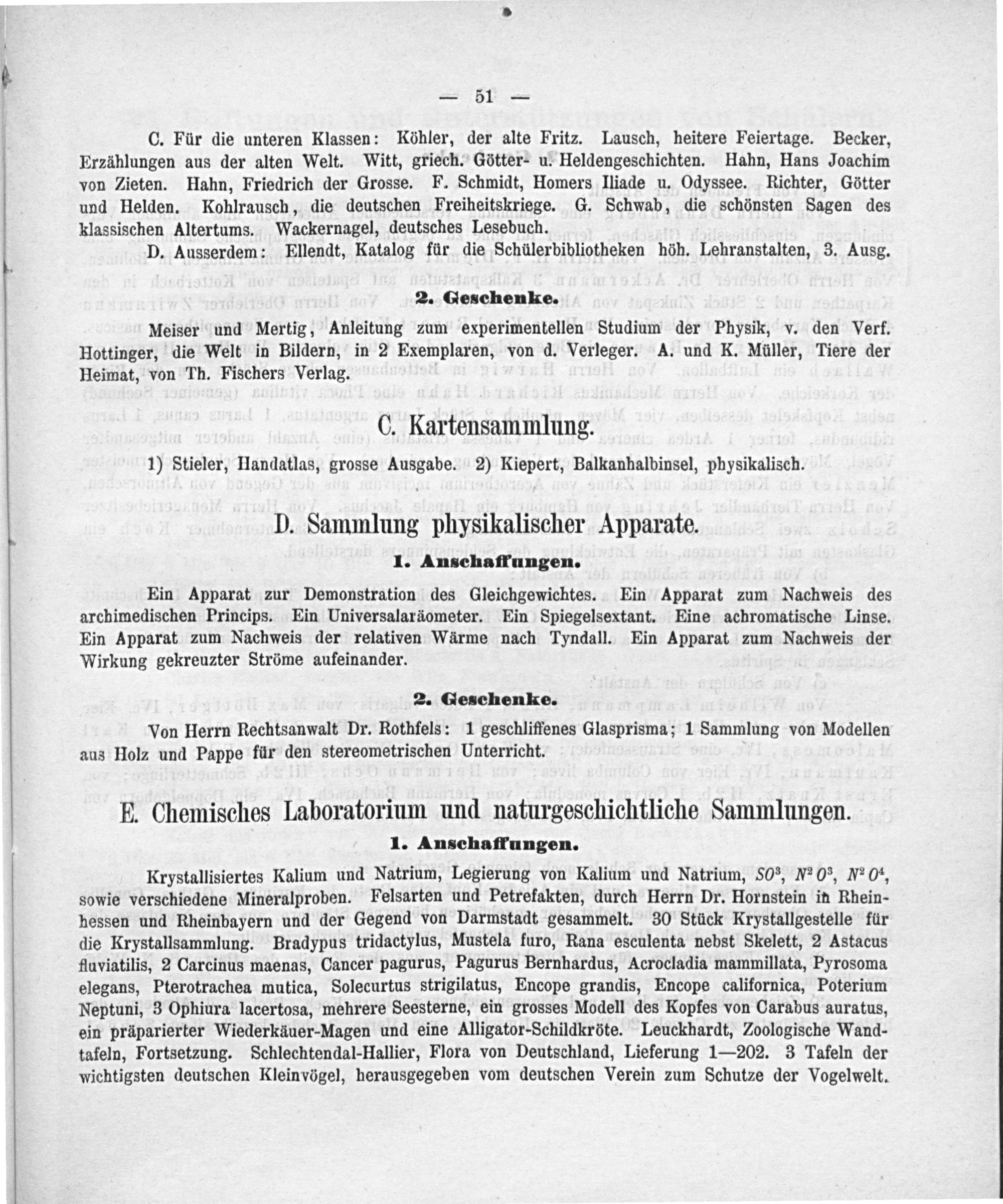 E. Chemisches Laboratorium und naturgeschichtliche Sammlungen. 1. Anschaffungen.