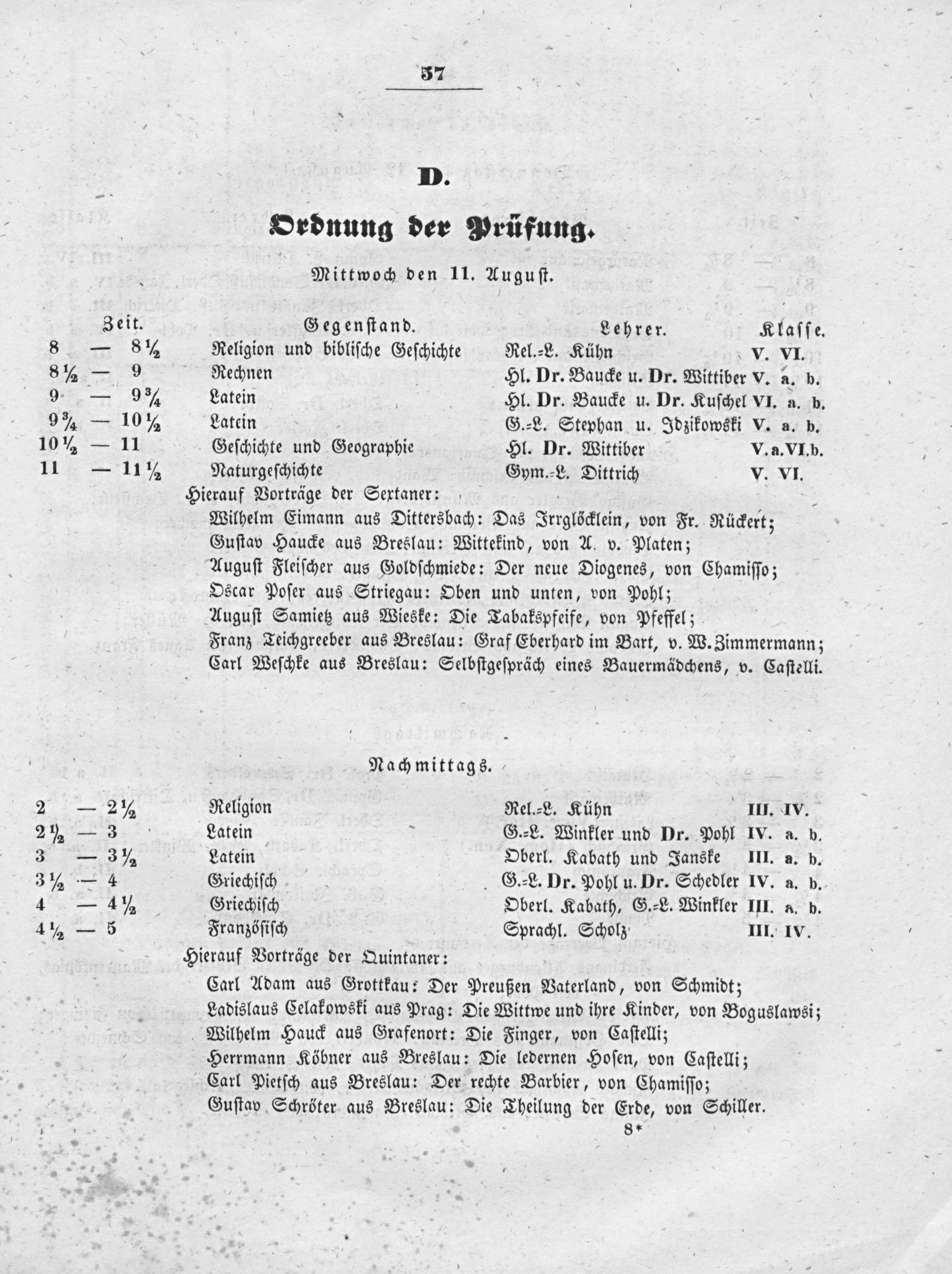 Wilhelm Eimann aus Dittersbach: Das Irrglöcklein, von Fr. Rückert; Guſtav Haucke aus Breslau: Wittekind, von A. v. Platen;