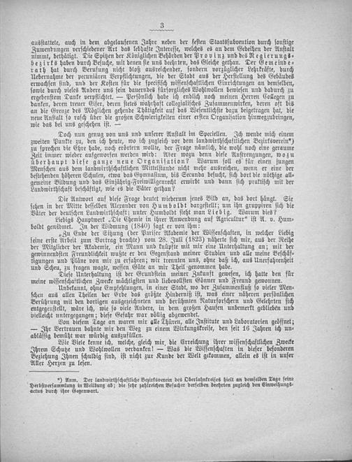 „Zu Ende der Sitzung(der Pariſer Akademie der Wiſſenſchaften, in welcher Liebig ſeine erſte Arbeit zum Vortrag brachte) vom 28. Juli(1823) näherte ſich mir, aus der Reihe der Mitglieder der Akademie, ein Mann und knüpfte mit mir eine Unterhaltung an; mit der gewinnendſten Freundlichkeit wußte er den Gegenſtand meiner Studien und alle meine Beſchäf⸗ tigungen und Pläne von mir zu erfahren; wir trennten uns, ohne daß ich, aus Unerfahrenheit und Scheu, zu fragen wagte, weſſen Güte an mir Theil genommen habe.