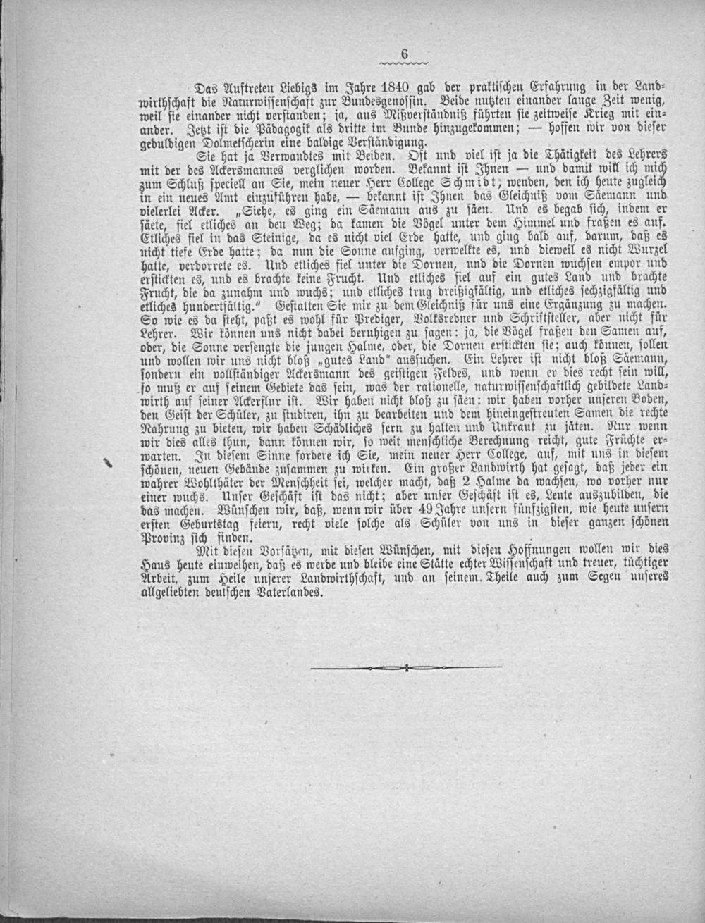 Mit dieſen Vorſätzen, mit dieſen Wünſchen, mit dieſen Hoffnungen wollen wir dies Haus heute einweihen, daß es werde und bleibe eine Stätte echter Wiſſenſchaft und treuer, tüchtiger Arbeit, zum Heile unſerer Landwirthſchaft, und an ſeinem. Theile auch zum Segen unſeres allgeliebten deutſchen Vaterlandes.