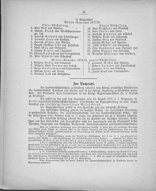 Dieſe Beſtimmungen ſind bei einem Schüler der Landwirthſchaftsſchule zu Weilburg bereits in Anwendung gekommen.