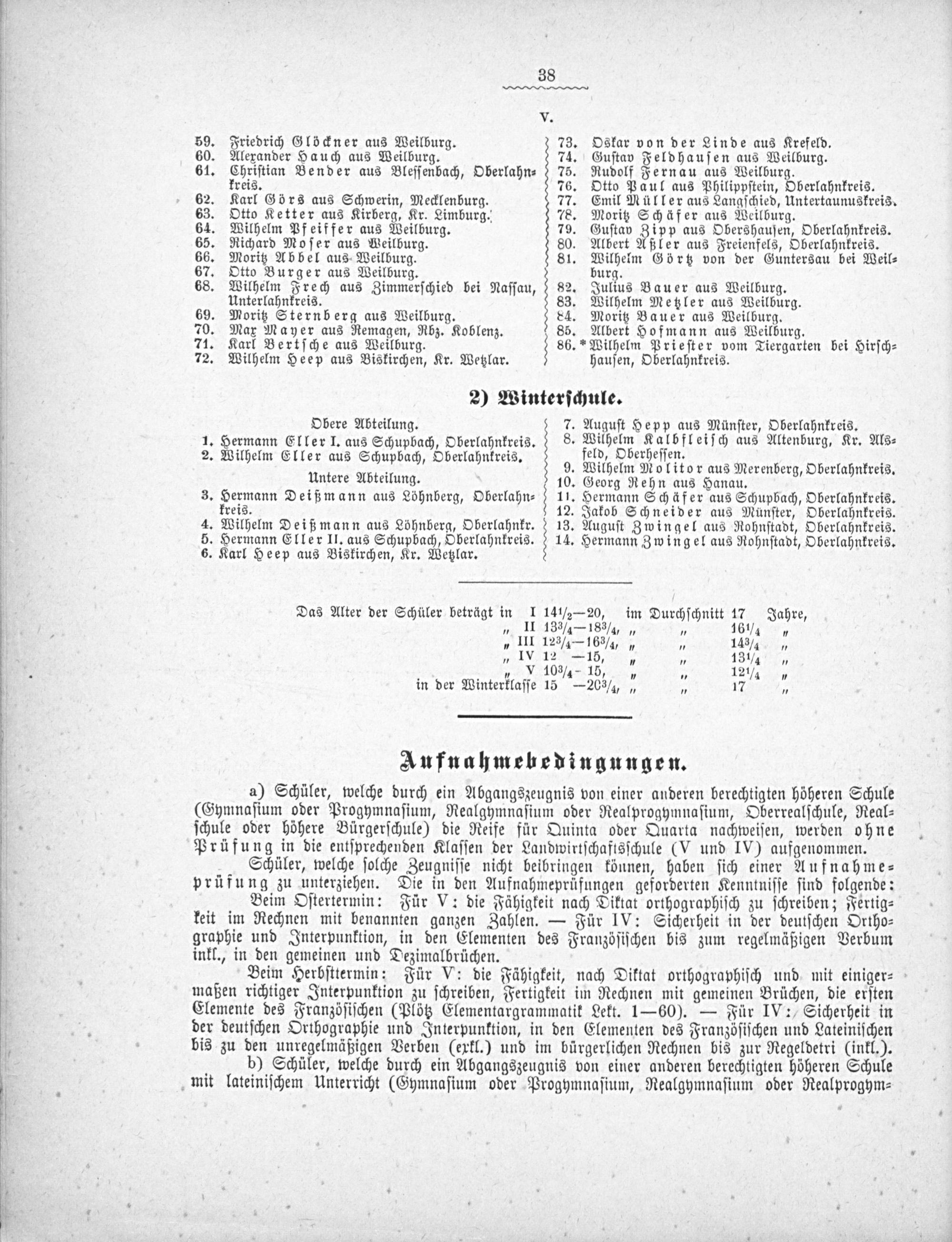 Obere Abteilung. 1. Hermann Eller. aus Schupbach, Oberlahnkreis. 2. Wilhelm Eller aus Schupbach, Oberlahnkreis. Untere Abteilung.