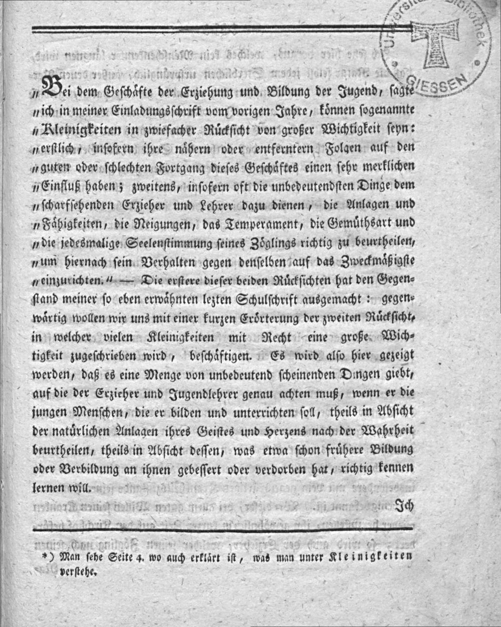 4 denhen n eeen e 7„B. de dem n Geſchzfte der ecehutg. und Bidung der Jußend, ſase e nich in meiner Einladungsſchrift vom vorigen Jahre, koͤnnen ſogenannte Kleinigkeiten in zwiefacher Ruͤckſicht von großer Wichtigkeit ſeyn: