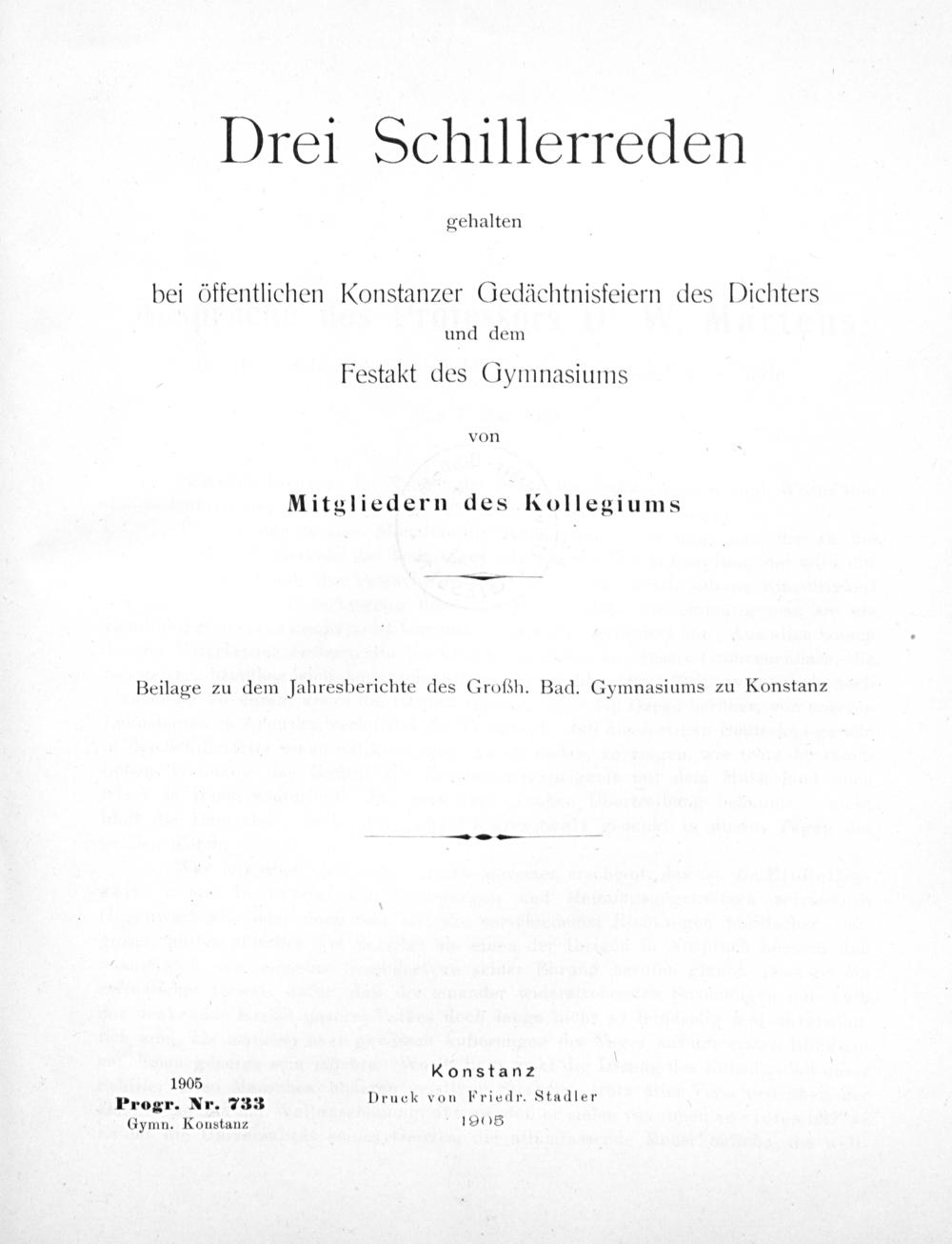 Progr. Nr. 733 Druck von Friedr. Stadler Gymn. Konstanz 1905