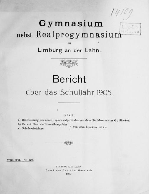 Limburg an der Lahn. Bericht uber das Schuljahr 1005.