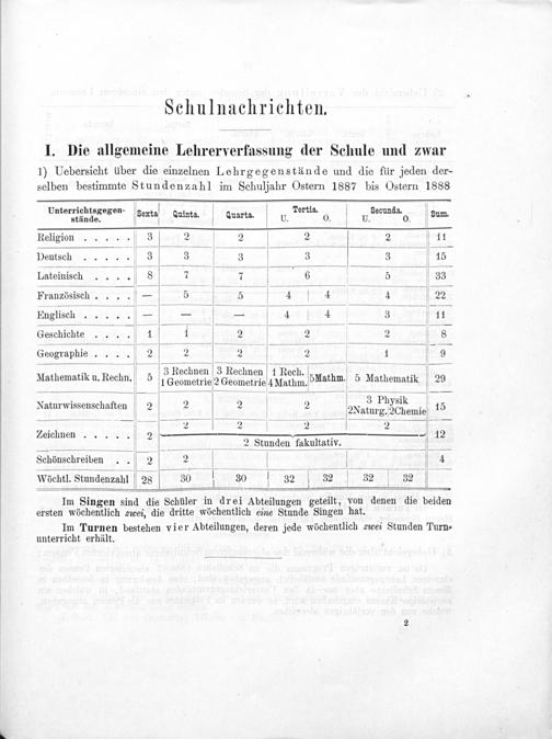 selben bestimmte Stundenzahl im Schuljahr Ostern 1887 bis Ostern 1888