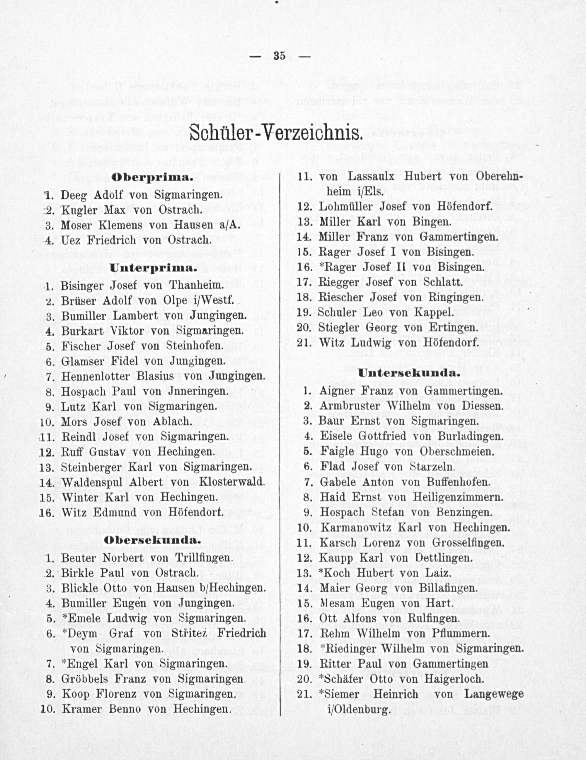 Untersekunda. Aigner Franz von Gammertingen.