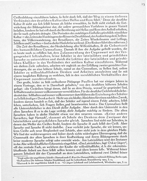 Vergl. auſter der angeführten Schrift v. Harnack auch G. Roethe Humaniſtiſche u. nationale Bildung, Berlin 1906.