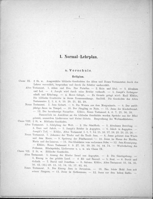 Classe IX. 2 St. w. Ausgewählte biblische Geschichten des Alten und Neuen Testamentes qurch den Lehrer vorerzühlt, besprochen und durch die Schüler nacherzählt.