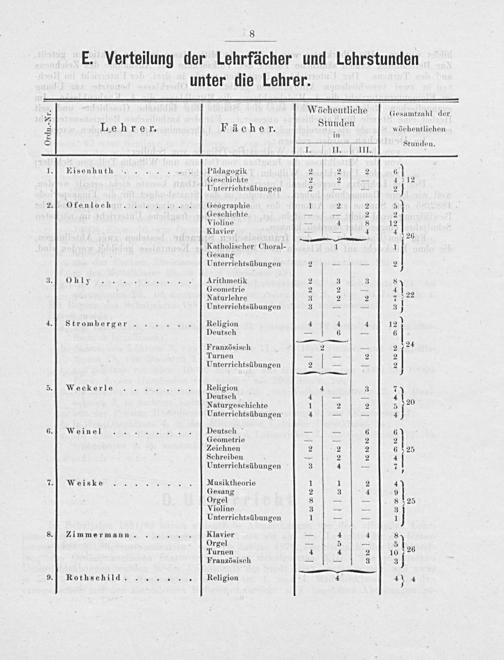 der Lehrfächer und Lehrstunden unter die Lehrer.