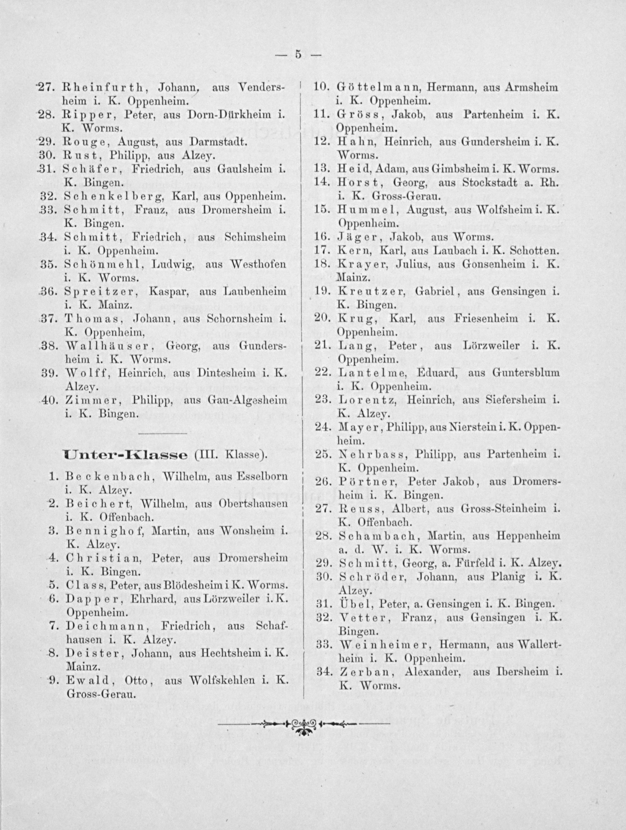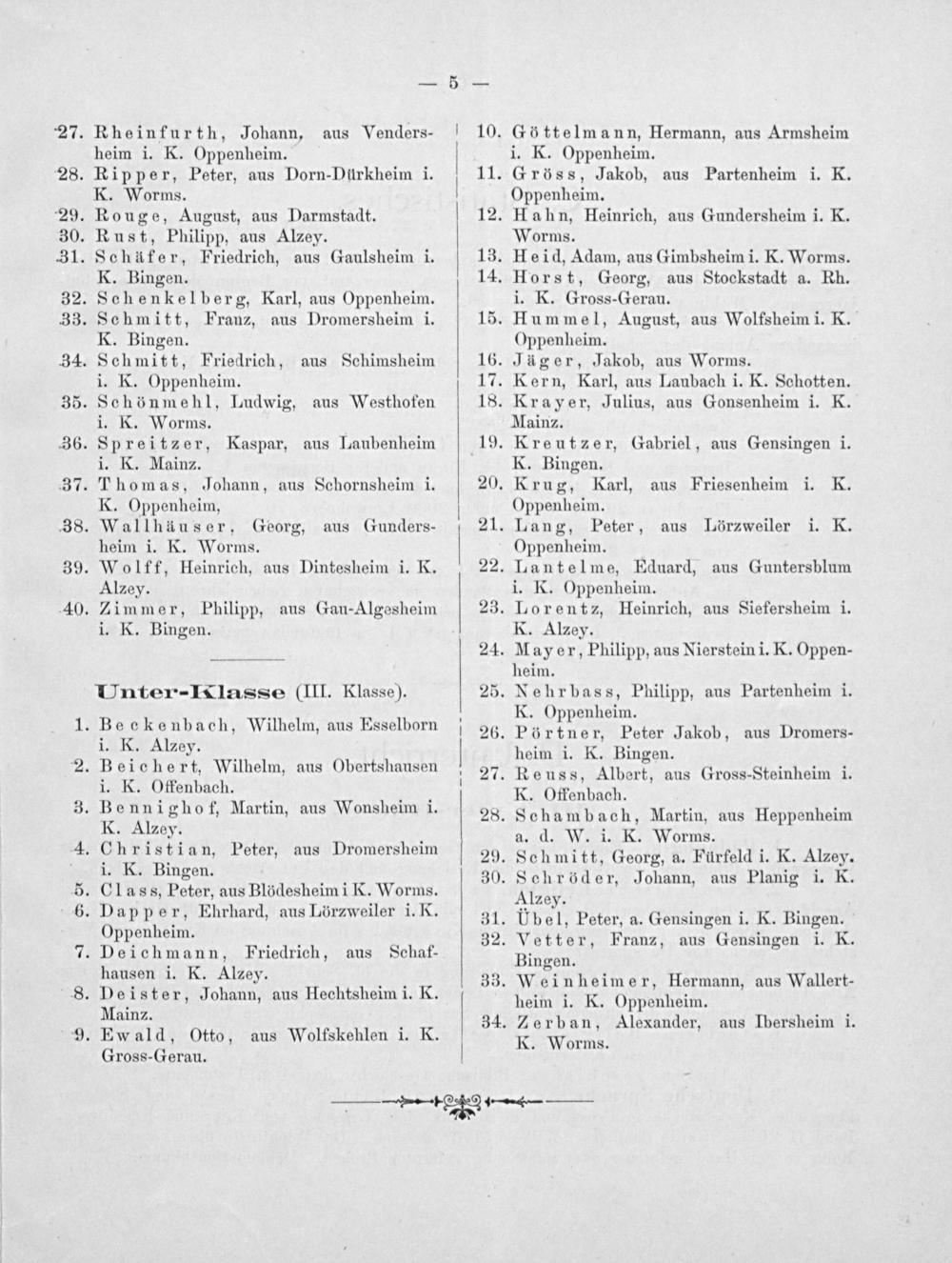 . Jäger, Jakob, aus Worms. . Kern, Karl, aus Laubach i. K. Schotten. . Krayer, Julius, aus Gonsenheim i. K.