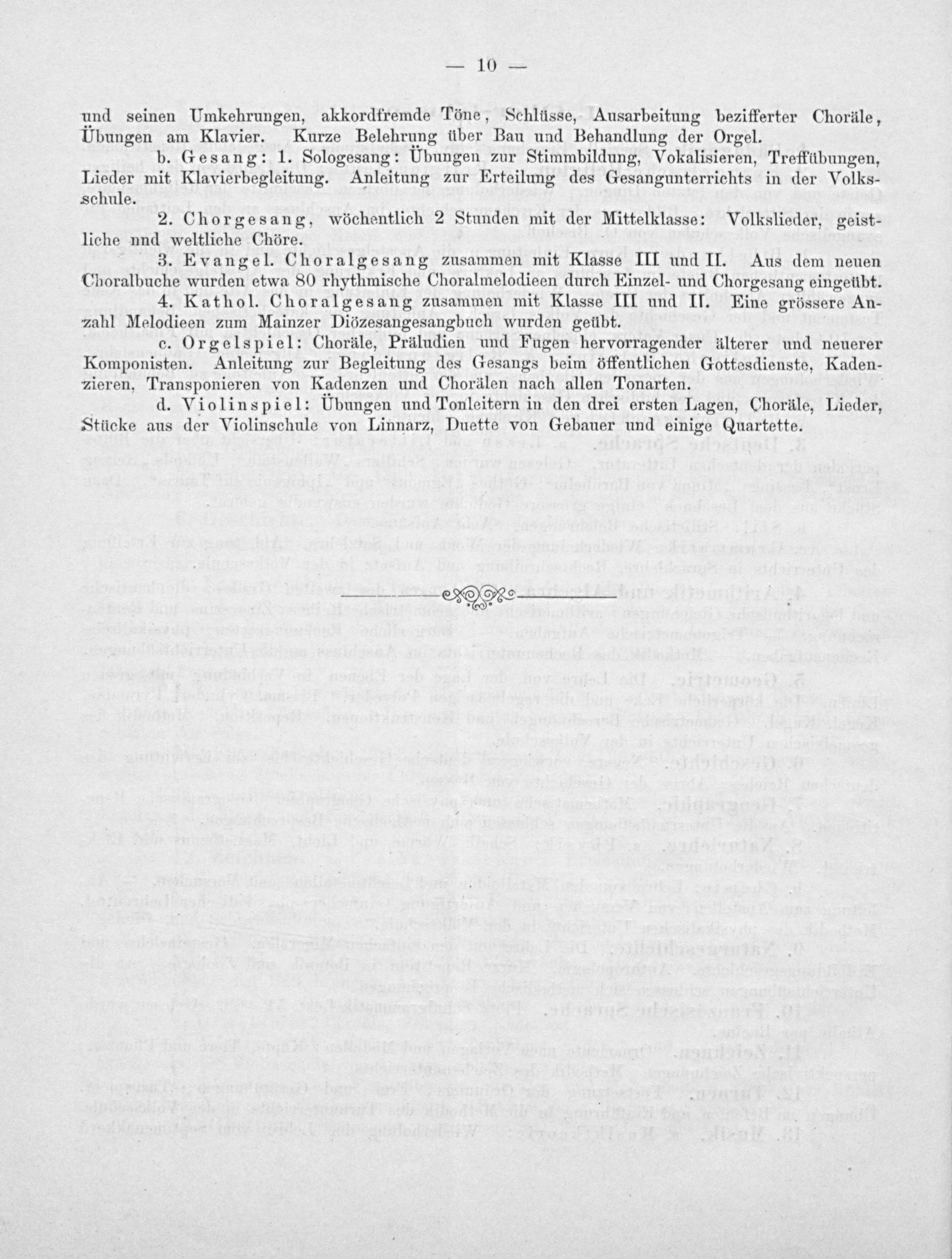 4. Kathol. Choralgesang zusammen mit Klasse III und If. Eine grössere An- zahl Melodieen zum Mainzer Diözesangesangbuch wurden geübt.