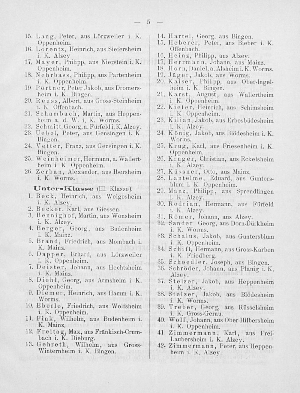 Schambach, Martin, aus Heppen- heim a. d. W. i. K. Worms. Schmitt, Georg, a. Fürfeldi.K. Alzey. Uebel, Peter, aus Gensingen i. K. Bingen.