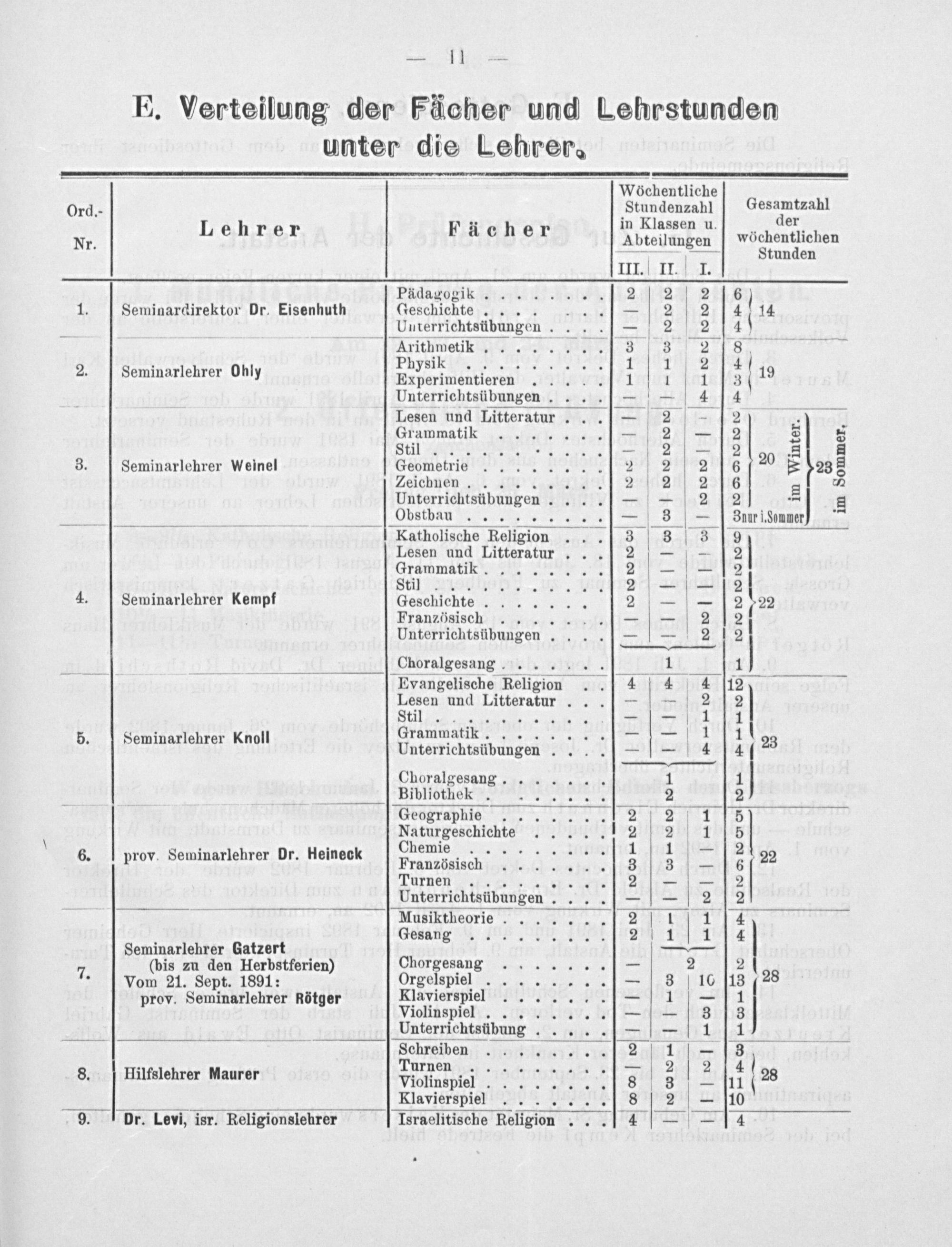 E. Verteilung der Fächer und Lehrstunden